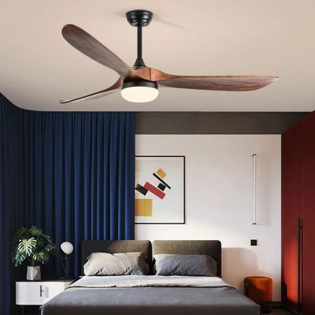 Solid Wood Blade Ceiling Fan 52-Inch with LED Light and Remote Control