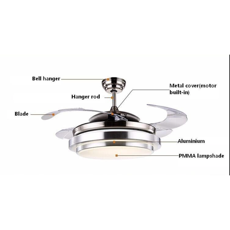 PCP Retractable LED Ceiling Fan with Remote Control – 36W, 107cm