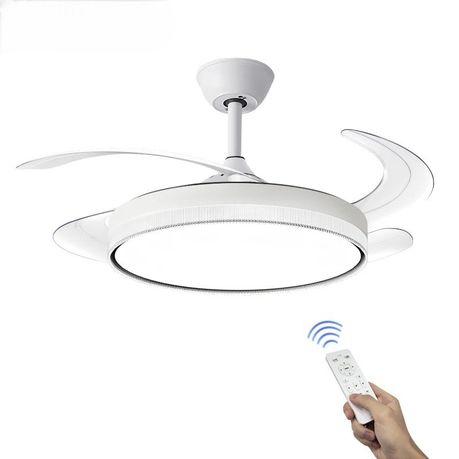 Retractable Ceiling Fan With Remote Control - White & Silver